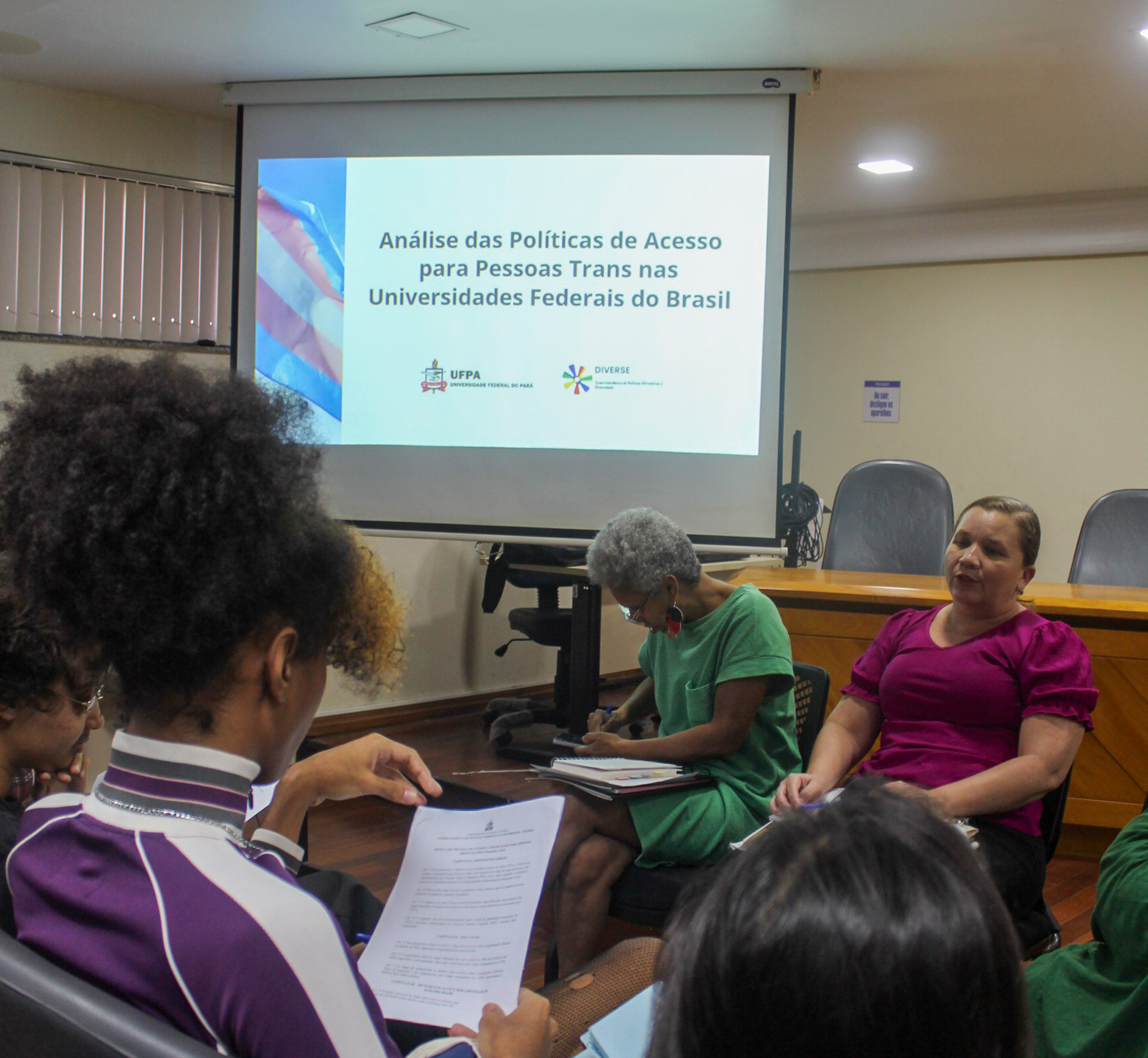 O encontro ocorreu no auditório do Capacit e teve como foco a análise de experiências já existentes em outras universidades federais, além da leitura coletiva da minuta inicial da resolução que deverá regulamentar o acesso de pessoas trans e travestis à graduação na UFPA. A reunião foi conduzida pela professora Milene Lauande, coordenadora de Diversidade Cultural da DIVERSE.